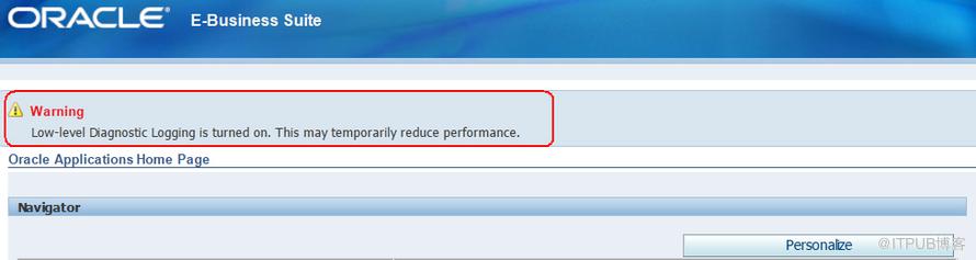 登陆EBS后,主界面有一个Warning:Low-level Diagnostic Logging is turned on. This may temporarily reduce performance.