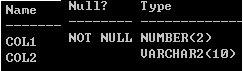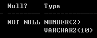 CREATE TABLE T2 ( Col1 NUMBER(2) PRIMARY KEY, Col2 VARCHAR2(10) );