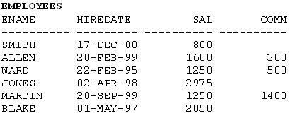 example in Figure 3-12 shows the SQL statement that retrieves the JOBS table records with