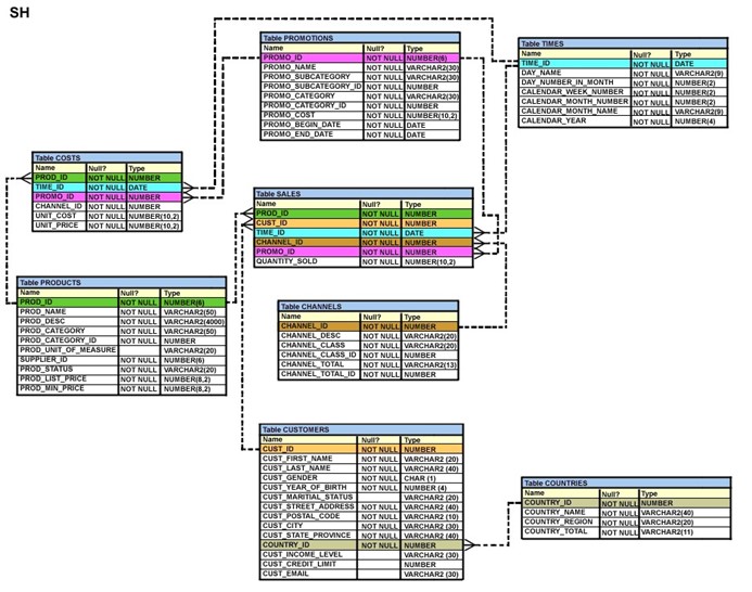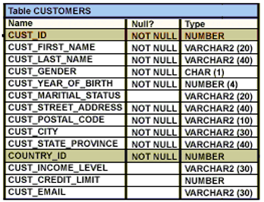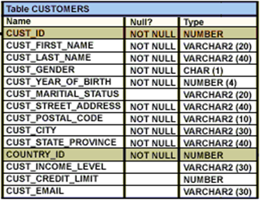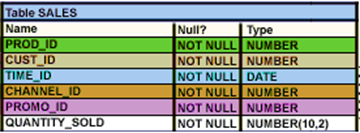 View the Exhibit and examine the structure of the SALES, CUSTOMERS, PRODUCTS, and TIMES tables. The PROD_ID column is the foreign key in the SALES table, which references the PRODUCTS table. Similarly, the CUST_ID and TIME_ID columns are also foreign keys in the SALES table referencing the CUSTOMERS and TIMES tables, respectively. Evaluate the following CREATE TABLE command: