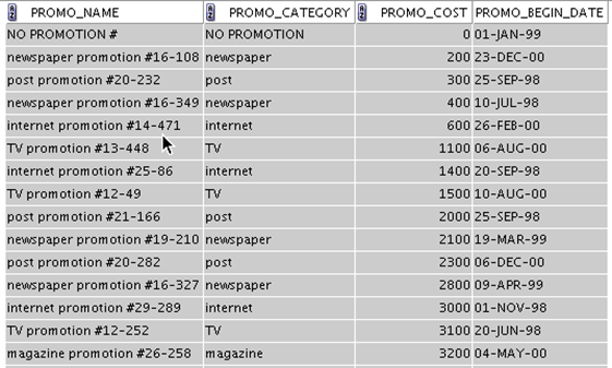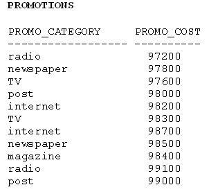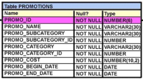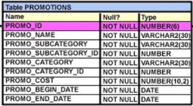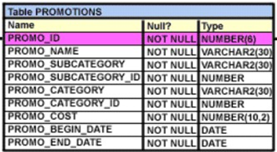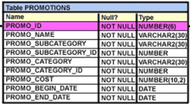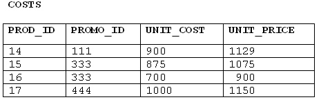 View the Exhibits and examine the structures of the COSTS and PROMOTIONS tables. Evaluate the following SQL statement: