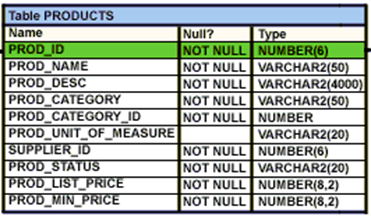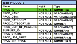 A. SELECT prod_id FROM products INTERSECT SELECT prod_id FROM sales; B. SELECT prod_id FROM products MINUS SELECT prod_id FROM sales; C. SELECT DISTINCT p.prod_id FROM products p JOIN sales s ON p.prod_id=s.prod_id; D. SELECT DISTINCT p.prod_id FROM products p JOIN sales s ON p.prod_id <> s.prod_id; |