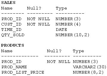 CREATE TABLE new_sales(prod_id, cust_id, order_date DEFAULT SYSDATE) AS SELECT prod_id, cust_id, time_id FROM sales; |