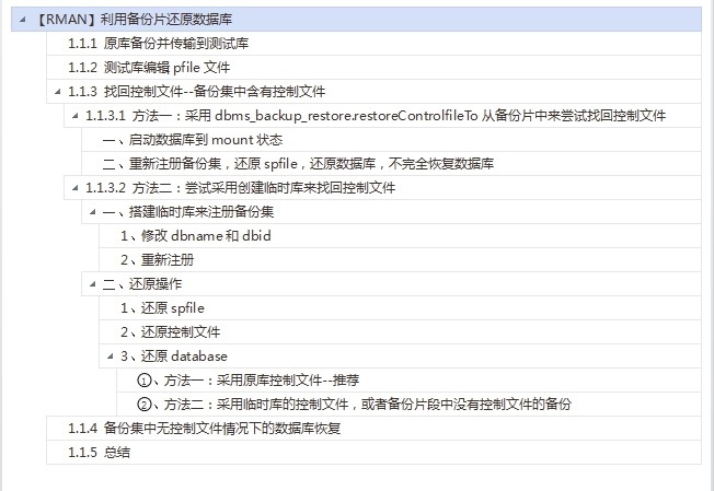 前边的3篇blog中介绍了,在只剩下一些备份片的情况下如何从这些仅剩的备份片中判断是否有控制文件的备份并还原整个数据库,我们介绍了2种① 推荐: 采用dbms_backup_restore.restoreControlfileTo从备份片中来尝试找回控制文件 ② 尝试采用创建临时库来找回控制文件 ③ 采用操作系统命令的strings来判断(私聊) ,今天我们来看看如何直接通过rman的restore命令来尝试判断备份集中是否含有控制文件的备份,这也是一种推荐的方法。