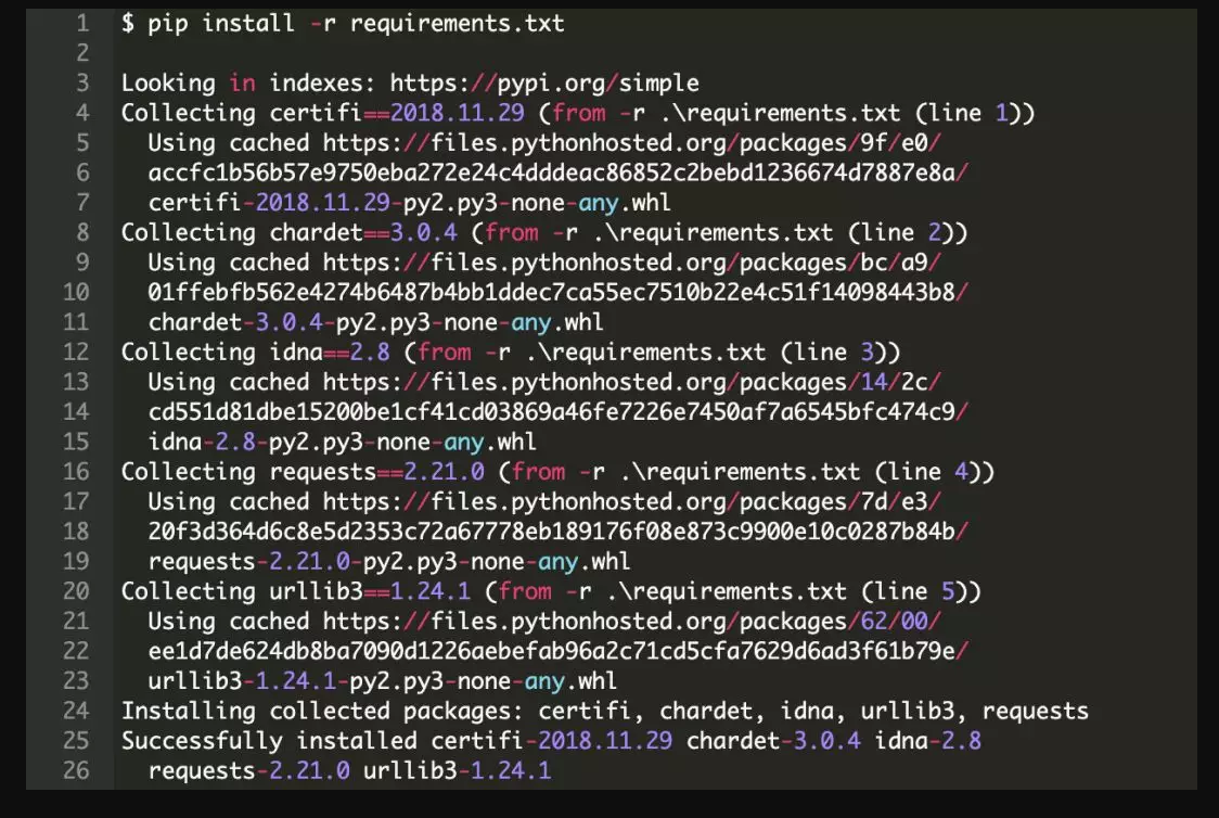 1. 在命令行使用 pip 以及需求文件安装新的软件包