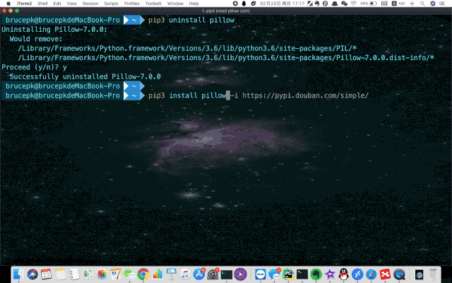 你可以看到与上面类似的输出信息。你可以使用 pip 以及 install 命令,其后跟着你想要安装的包名。pip 会在 PyPI 中查找这个包,计算其依赖关系,安装并确保 requests 正常工作。