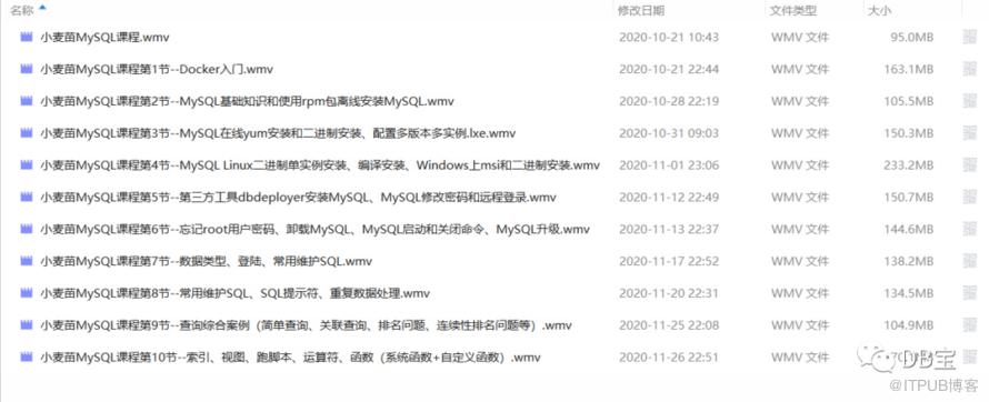 MySQL DBA包括目前热门的docker容器技术、MySQL从入门到高可用、读写分离、负载均衡等,共约40节80小时左右。版本从5.5~8.0都有!