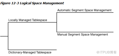 figure 12-3 shows the alternatives for logical space management in a tablespace.