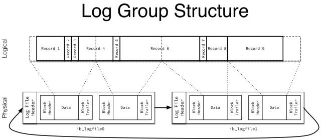 通常也会叫做"InnoDB log(s)",预先分配至少2个日志文件,第一个文件开头和最后一个文件结尾进行首尾相连以循环的方式重复使用。"Redo"的意思是在必要时(如:崩溃恢复时)可以使用Redo Log中的数据来重新应用到InnoDB数据文件中,使得InnoDB能够恢复到一个一致性状态