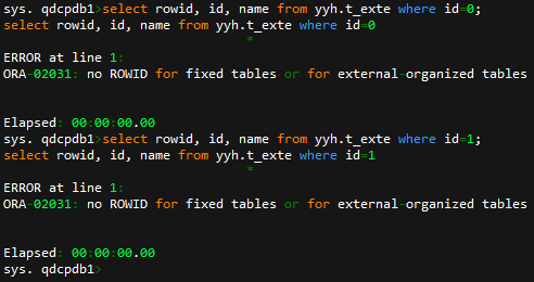 在qdcpdb1内查询数据的rowid信息: