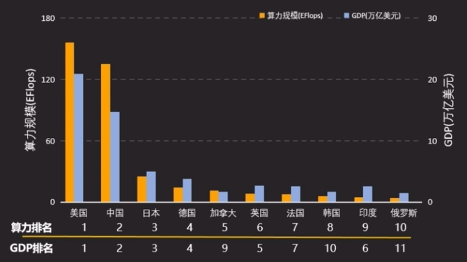 世界各国算力和GDP排名(来源:迟九虹,华为算力时代峰会演讲)