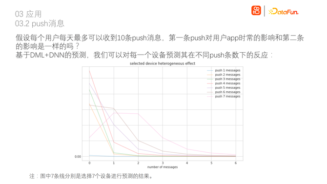 平台规定每个用户每天最多可以收到 10 条 push ,第 一条 push 对用户的 app 时长影响和第二条 push 的影响肯定是不同的:从逻辑上来说,第二条 push 带来的影响会弱一点。如何用模型去 capture 这个影响?通过双重神经网络的模型,我们可以对每一个设备预测它在不同 push 条数下的反应。