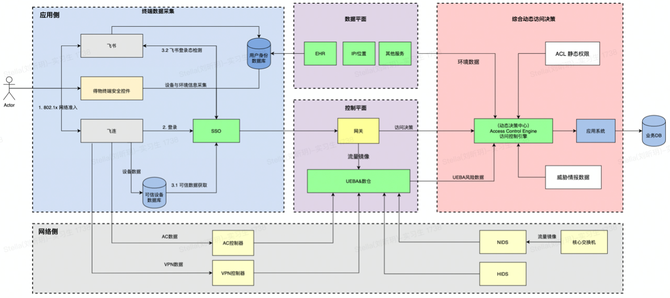 用户或者设备的访问级别会随着时间环境改变,通过各类数据,动态的判断访问级别,这些信息会作为访问控制引擎(Access Control Engine)决策的一部分。举个例子,一个没有升级新版本OS的设备在访问的时候等级可能会被降低。用户在新的地点登录或者访问会被属于不同的访问级别。
