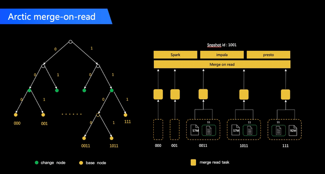 OLAP 场景下,用户一般更关注计算上的耗时,对数据就绪的敏感度相对不高。针对中小规模数据量的 Arctic 表或较简单的查询,通过 Trino/Impala 进行 OLAP 查询是一个相对高效的方案,基本上可以做到秒级 MOR 查询耗时。成本上,需要搭建 Trino/Impala 集群,如果团队中已有在使用的话,则可以根据负载情况考虑复用。