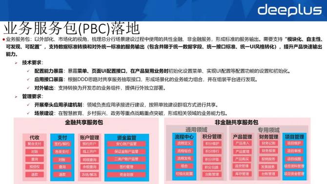 从业务能力上来说,核心在于PBC的建设,所以着重再跟大家分享一下我们PBC落地的架构层面和设计层面上的规划,从外部市场也就是客户的视角梳理一些场景。