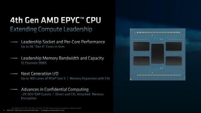 AMD发布了第四代AMD EPYC(霄龙)处理器--AMD EPYC 9004系列,代号“Genoa(热那亚)”。