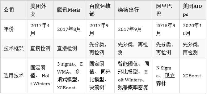 在指标异常发现方面,业内有较多的应用产品,具体如下: