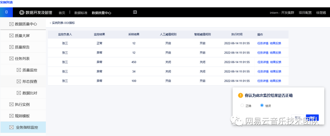 结果反馈:结果反馈,主要针对有监督学习算法,对于异动预测的结果,人工确认后,反馈给平台,进一步提升模型的可靠性。