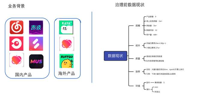 总体来讲,针对目前的数据现状,治理面临的问题是 体量大、环境杂、缺规范、存在大量的资源浪费。
