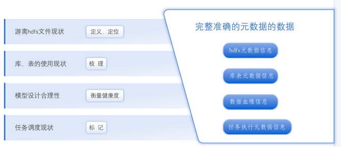 22年年初开始,从网易数帆大数据团队拿到了比较完备的元数据内容,涵盖了表粒度的元数据信息、任务粒度元数据信息、hdfs文件元数据信息等。