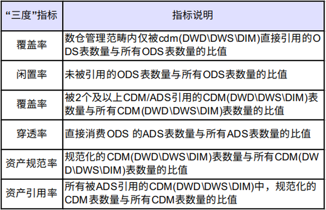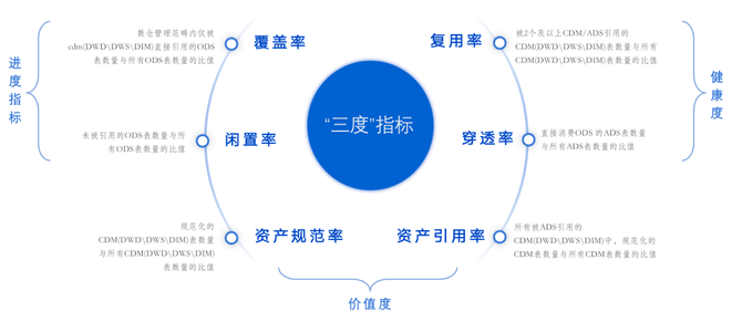 "三度"指标概览,可以从不同的粒度,反馈数仓整体建设健康度的情况。