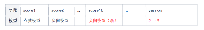 假设目前线上有点赞模型、负向模型2个模型,本次需要更新负向模型版本,则:更新版本(version+1),新版负向模型更新在空白字段score16,同时保留旧版负向模型score2。模型内容和分数字段的映射关系在精排服务内维护。若发现新版模型不符合预期,则更新映射关系,使用旧版模型字段score2即可完成回滚。若经线上验证新版模型符合预期,则打分服务服务停止对旧模型)生成打分,同时在精排服务中标记旧模型字段为空白即可完成发布。