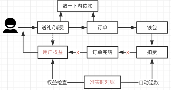 送礼、订单、钱包整个链路的一致性通过准实时对账退款+天级别对账来保障,简单讲是最终一致性。