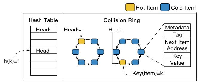 早期的版本中,Tair 的锁粒度是实例级别的,锁开销损耗较大。为了提升单机的处理能力,Tair 引入了 RCU 无锁引擎,实现内存 KV 引擎的无锁化访问,成倍提升了内存引擎的性能,相关工作发表在 FAST20 上:《HotRing: A Hotspot-Aware In-Memory Key-Value Store》。