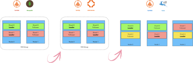 对于节点失效,涉及到判活和后续的数据处理两类的问题。对于很多系统而言,冗余和分片是分开的,比如 Redis Cluster、MongoDB、AnalyticDB Worker,即有一个 HA Group 的概念,HA Group 中的每一个节点,数据是完全一致的。不同系统处理的时候依然会有些区别,一些系统 HA Group 中的某一个节点所有分区都是 Leader,我们称为 Leader 节点,提供读写服务,其它节点只有冗余数据的同步流量,称为 Follower 节点,比如 Redis Cluster,这类系统在调度系统不够成熟的时期,有一个明显的短板就是 Follower 节点所在的机器资源是有空余的,通常是通过朴素的混布来提供资源的利用率,但也带来了部署上的复杂度,所以在系统设计的时候就会有这样的考量:能不能在 HA Group内分散这些分区的 Leader 呢,于是就有了下面这些系统。一些系统 HA Group 的每一个节点都承担部分分区的 Leader,这就是每个节点都会提供读写服务,比如 AnalyticDB Worker。这类有 HA Group 的系统,判活和后续数据处理一般只在 HA Group 内,即某个节点失效后,会把访问流量转移到 HA Group 内的其它节点,然后通过上层的调度在 HA Group 内补充新的节点。还是老问题,在调度系统还不够成熟的时期,补充新的节点也会带来运维的复杂度,那就会有新的考量:能不能跨越 HA Group 的限制,把冗余的个数和系统内节点的个数解耦呢?于是就有了 Kudu 这类系统的架构,冗余和分片是交织起来的,某一个节点失效之后,它上面的分区会由中心节点来调度到其它节点。在调度能力非常成熟的今天,数据库系统自身的能力怎么和数据库相关的调度能力想结合,也会给系统架构带来新的启发。