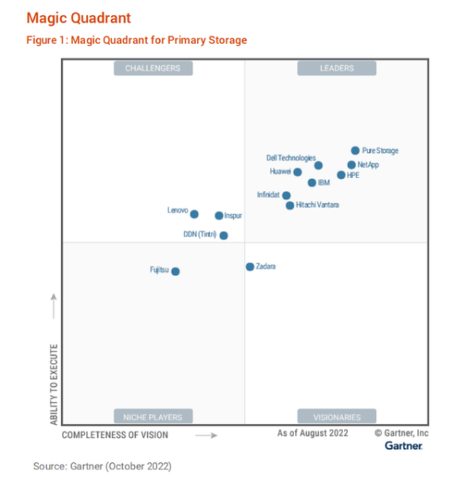 本月,Gartner发布2022年全球主存储魔力象限报告《Magic Quadrant for Primary Storage, 2022》,华为凭借OceanStor Dorado全闪存存储和OceanStor混合闪存的优异表现,又一次成为入选该报告“领导者象限”的中国厂商。这已经是华为连续第7年入选该象限,其主存储的实力和稳定提升的能力可见一斑。