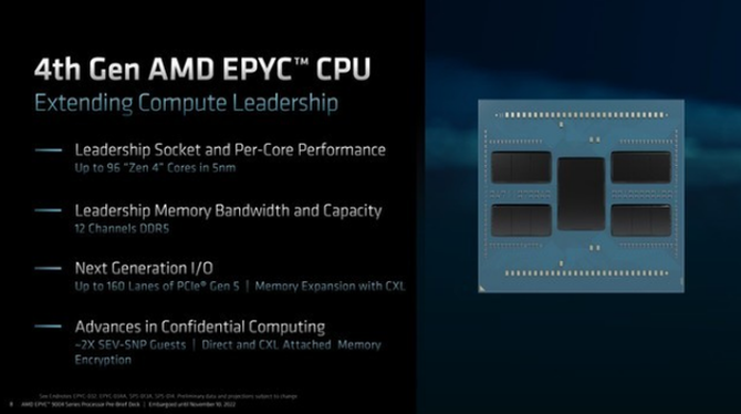 第四代AMD EPYC处理器应该是是高性能、低功耗的优选服务器处理器产品,,且能够为云计算、HPC和企业工作负载提供优秀的TCO控制。不仅如此,第四代AMD EPYC处理器还具备高度优化的能源效率,可以帮助终端客户节省用电、降低碳足迹,甚至还能够提供先进的安全的功能。