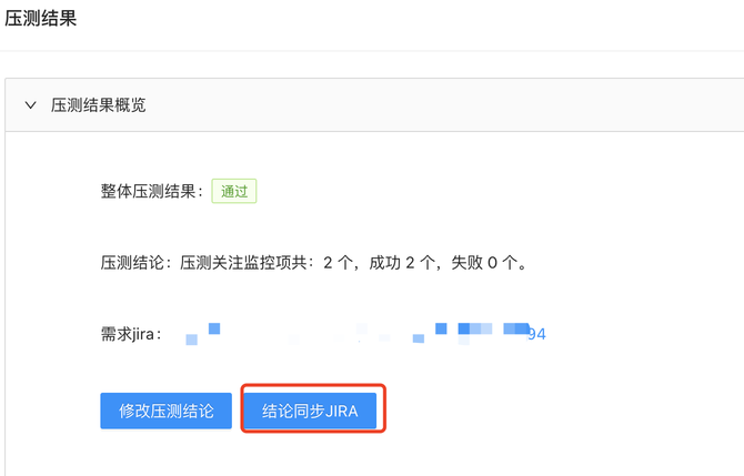 性能测试结果和需求单打通。针对具体需求的性能测试不再需要手动记录性能测试结果与数据,压测通过后可直接同步至对应JIRA,便于查看及后续复盘。