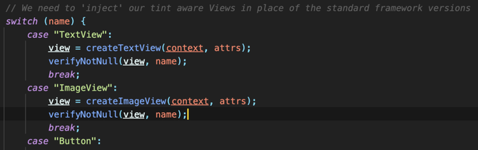 这也给了我们另一个提醒。如在 xml 中写 TextView / TextViewCompat,在 AppCmpatViewInflater 的作用下最终创建的实例都是 TextViewCompat。但在不使用 Layout2Code 或类 X2C 方案时,它们的效率是不同的,前者命中上图的直接创建逻辑,而后者则会通过反射创建。
