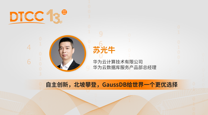 华为云数据库服务产品部总经理苏光牛发表了题为《自主创新,北坡攀登,GaussDB给世界一个更优选择》的精彩演讲。