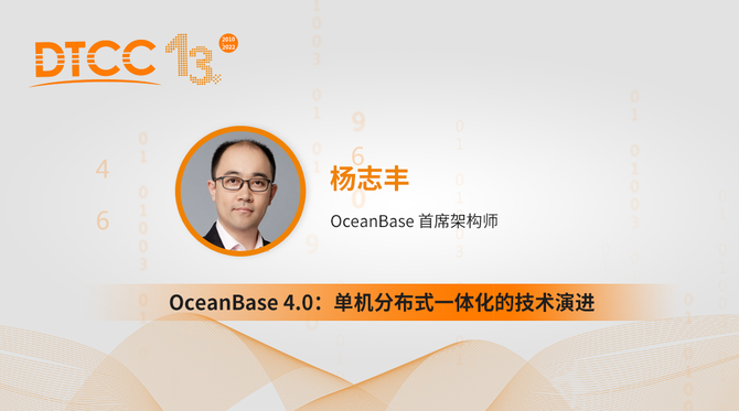 在大会首日主会场1最后一位带来分享的嘉宾是OceanBase首席架构师杨志丰,他在题为《OceanBase 4.0:单机分布式一体化的技术演进》的演讲中表示:从2014年OceanBase 0.5版本开始,经过多年多版本的更新,OceanBase逐渐演进的越来越成熟,并在TPC-C国际权威的OLTP评测中表现突出,具有很好的扩展性。
