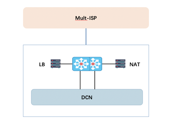 服务组件:机房内LB(Load Balance)、NAT(Network Address Transfer)等基础网关服务采用One-Arm的方式旁挂核心网络设备,主动提供对外、对内的Internet服务访问能力。