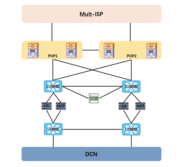 资源集中化:新建区域级公网POP节点,对外接入不同公网带宽资源,对内统一接入,为各机房提供公网服务能力;