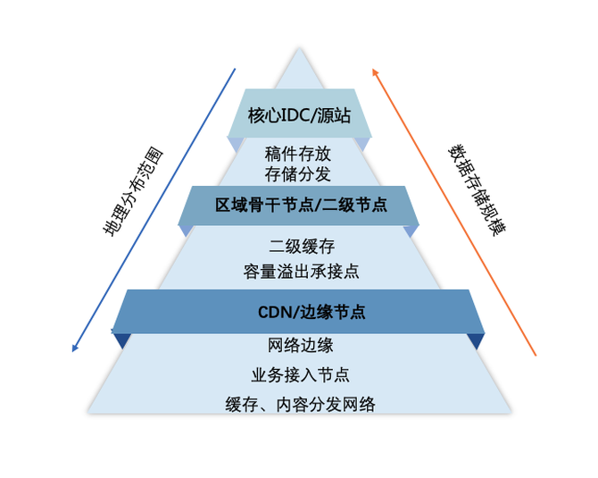 CDN/边缘节点:规模小,提供算力、数据存储能力有限,就近为用户提供服务,业务利用相对少量的计算和存储资源缓存热门数据,并且会根据用户观看偏好等行为进行缓存内容的及时更新调整;