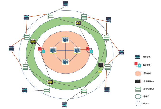 CDN节点单规/双规就近接入城域网节点,优先通过专线网络回源,公网回源则作为兜底策略;