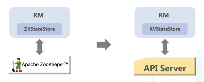 Remote Kubelet Service:实现了原来 YARN 中 NM 的所有接口,例如:启动容器、停止容器、获取容器状态的接口。通过这个服务容器启动从 NM 切换到 Kubelet,最终将容器运行时的管理下沉到底层的 Kubelet。