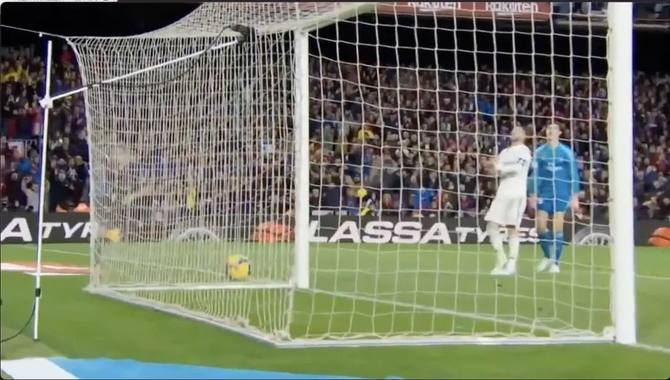判断足球与球门的位置关系,如果足球在球门外则肯定没进球。