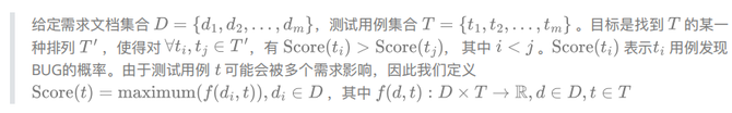 通俗地讲,就是对测试用例集合 T 进行排列,找到一种最优排列 T' ,使得按照这种排列顺序进行测试,能够给到我们最大的收益。TCP的目标标准可能各不相同,在本文及实际应用中,我们希望经过排序后的测试集合能够更早地发现BUG。换句话说,我们希望排列越靠前的用例,检出BUG的概率能够更高。这样一来给予了研发充足的时间去修复BUG,二来帮助QA筛选出冗余的用例,从而降低测试成本。