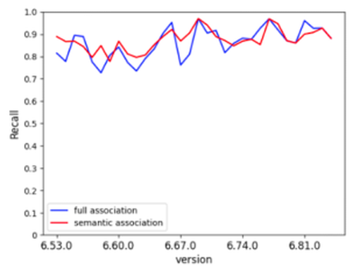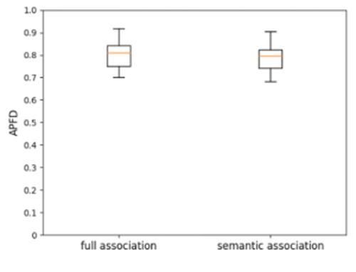 问题3的实验结果如上图。出乎意料的是,全量关联法在APFD上要比关键词关联法表现稍好,即其排列的测试用例,发现BUG的时机要提前一些,但是在召回率上的表现要比关键词关联法稍低一些,且稳定性也不如关键词关联法。因此,是否采用关键词关联法,取决于我们更关注BUG的发现时机,还是BUG的漏测率,但两者本质上并无太大差距。