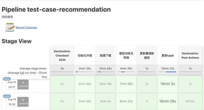点击【用例推荐】后,Jenkins会自动运行数据下载、模型训练、模型预测等过程。