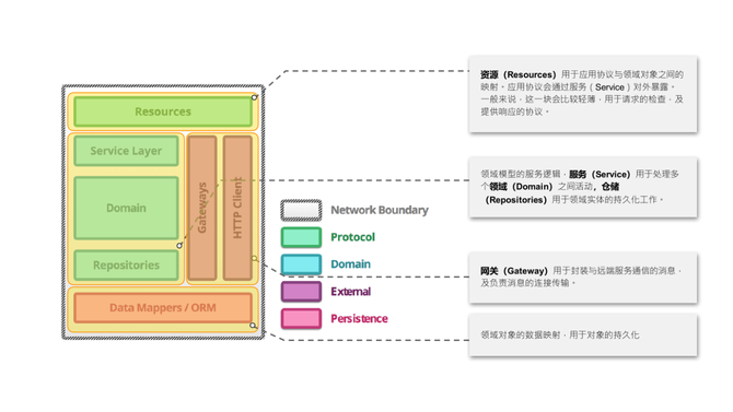 红色虚线部分是单元测试的时候就可以保证质量的,将测试限定在被测试系统的某一部分,比如只测Service那一层某一个接口或是函数,或者是domain里面的某一个方法。在这个基础上,更大的范围是组件层面的,组件之间能否交互,接口是否正确等。整个组件里中,排除掉外部的依赖(如数据依赖和网络的消息依赖),更多的是跟网关之间的接口测试。再往外,才是与外部应用的集成测试,应用与应用之间会有协议交互,彼此交付所遵循的协议和规范即为契约。基于契约的测试,我们称之为契约测试。而再往外就是端到端的测试了,关注的就是不是一两个应用,而是多个应用组合在一起的完整的系统。
