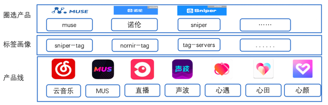 再向上则是最终服务业务的业务产品,魔镜通过打通和业务产品的能力,比如打通灵渠,可以实现从用户人群圈选到用户push的打通构建。还有天秤、音乐人运营等产品。
