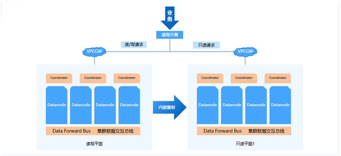 刚才讲的是同一套实例中的逻辑隔离的方式,其实这里我们也可以通过主备平面达到物理隔离,就是可以在主集群的备节点形成备平面,通过备平面支持只读请求。