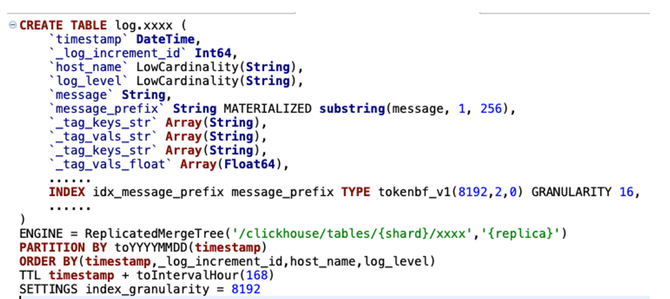 我们对ck在日志场景落地做了很多细节的优化(如图13),主要体现在库表设计:
