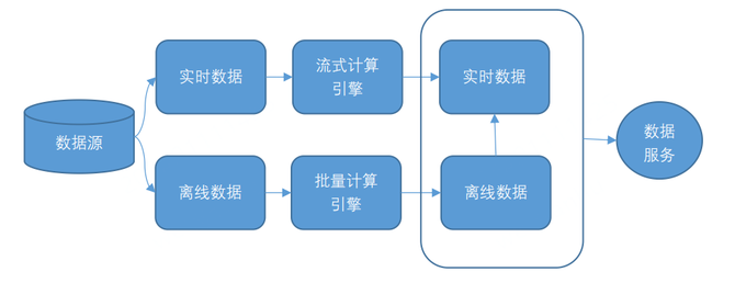 Lambda 架构将数据分为实时数据和离线数据,并分别使用流式计算引擎(例如 Storm、Flink 或者 SparkStreaming)和批量计算引擎(例如 Hive、Spark)对数据进行计算。然后,将计算结果存储在不同的存储引擎上,并对外提供数据服务。