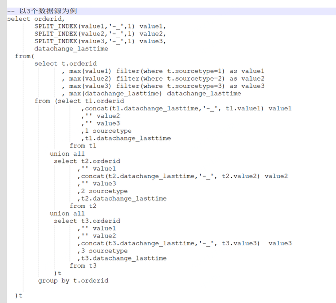 我们采用了 Union all+Group by 的方式替代 Join;就是用 Union All 的方式,把数据错位拼接到一起,后面加一层 Group By,相当于将 Join 关联转换成 Group By,这样不会放大 Flink 的状态存储,而且在增加新的流时,相比 Join,状态存储的增加也可以忽略不计,新增数据源的成本近乎为0。